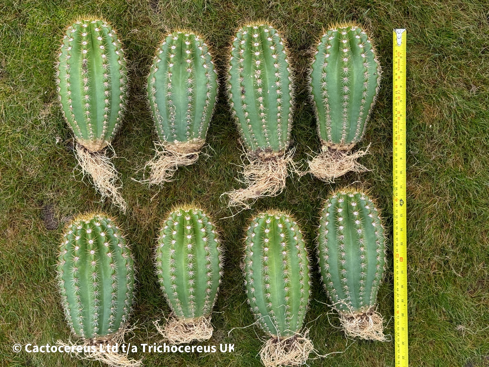 Trichocereus grandiflora hybrid “Sun Goddess” Please see individual listings for the plant ordered. Fully established root system (They get cleaned to go through the Phytosanitory process for import). Whole plant pictured in individual listing. Pups like crazy, easy to propogate. This is the first release of Sun Goddess into the UK market. We realise the price is steep, but, we have imported a batch of large specimens from the States at a substantial cost to the business to get them into the UK market safely and legally (Full Phytosanitory / CITE). Currently, they are extremely rare here (Only one other customer who we sold one to has one). We will be keeping most of batch for propagation projects but there is a rare opportunity for someone to pick up some spares from this one-off import.